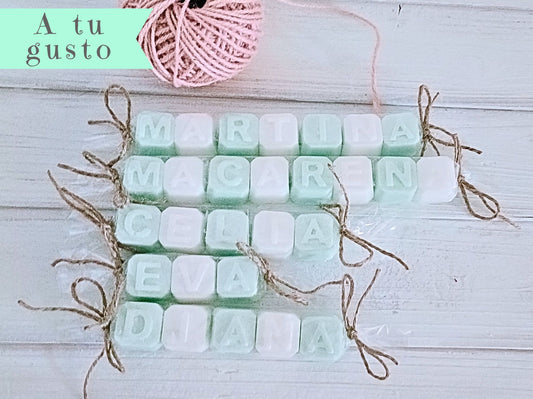 Soy un jabón de glicerina personalizada con los nombres de tus invitados, decorativa y preciosa....