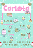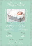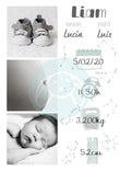 Lámina natalicia digital personalizada con el nombre y los datos de nacimiento de tu peque hecha con diseños propios de GiaN hand made.