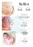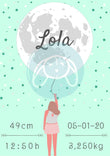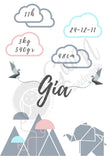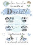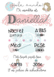Lámina natalicia personalizada con el nombre y los datos de nacimiento de tu peque hecha con diseños propios de GiaN hand made.