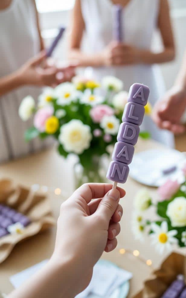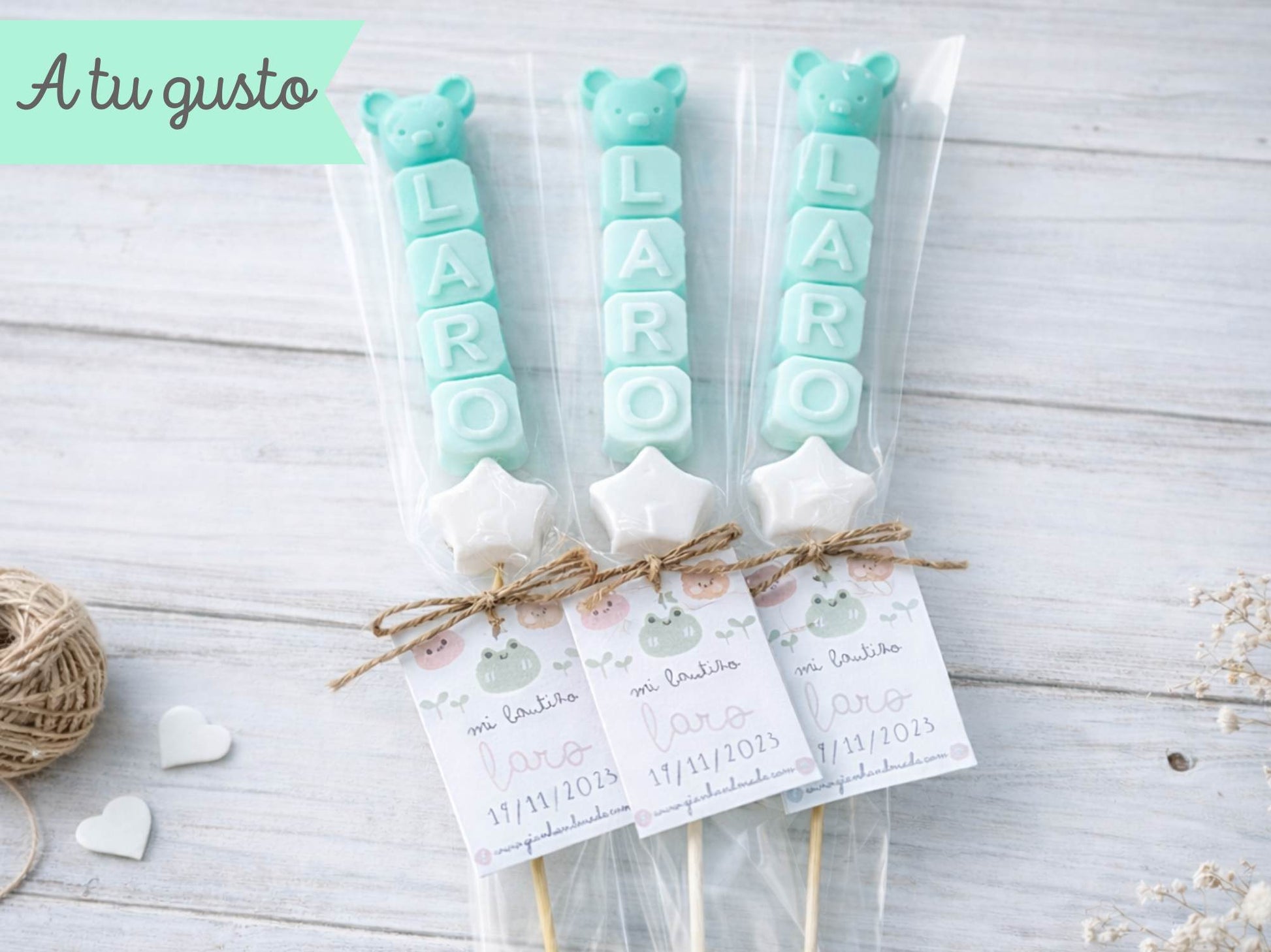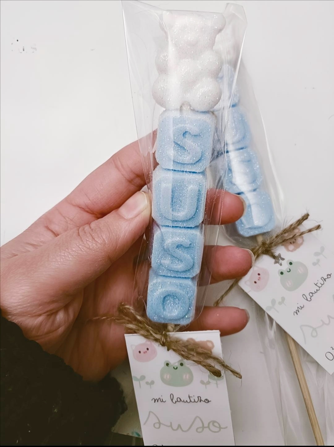 Soy tu regalo ideal una brocheta de jabón de glicerina personalizada con el nombre, decorativa y preciosa.